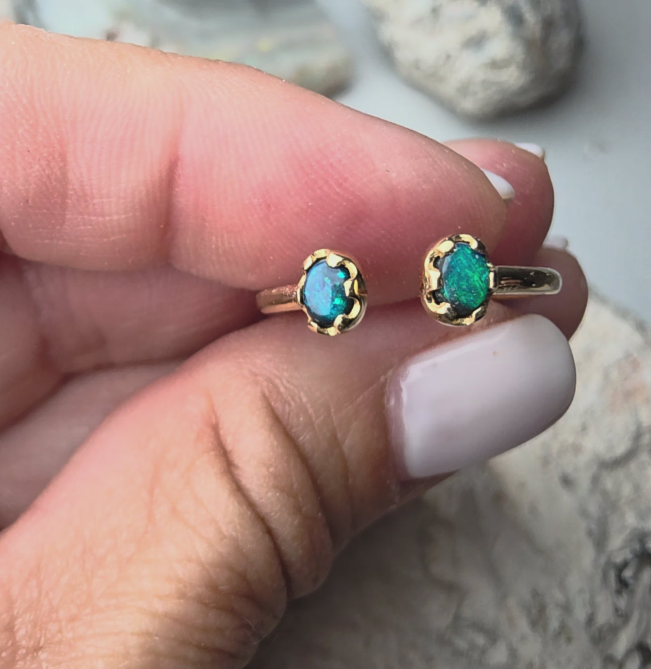 Coogee Ring GREEN Black Opal 14K Yellow Gold (Copy)
